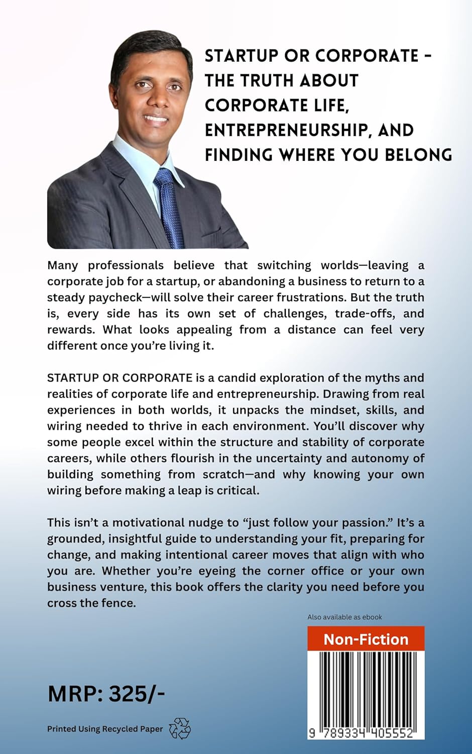 On the surface, Startup or Corporate looks like a career-choice book, a guide to help you pick a lane. But that was never the real question burning inside me when I sat down to write it. The real question was :