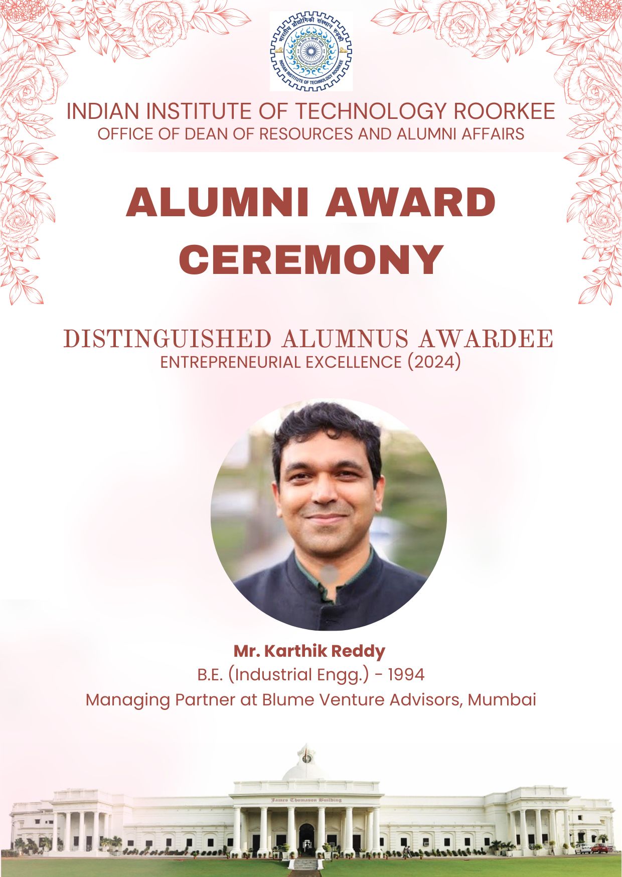 This recognition celebrates not only his professional achievements but also the inspiration he offers to aspiring entrepreneurs across academic communities. Mr. Reddy’s journey stands as a powerful example of how thoughtful capital, mentorship, and conviction can drive innovation, resilience, and excellence—bringing pride to both IIT Roorkee and IIM Bangalore.