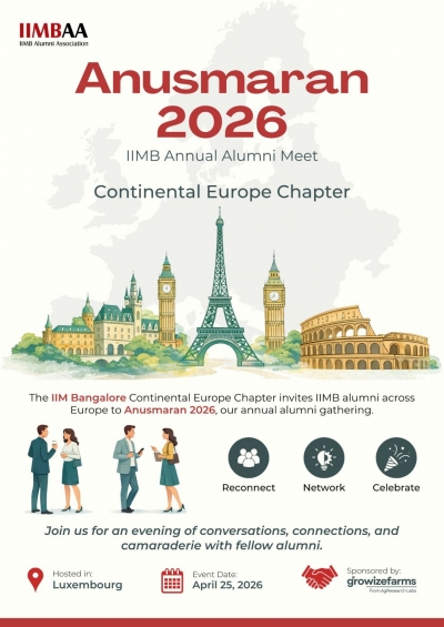 The Continental Europe Chapter of the IIMB Alumni Association will host Anusmaran 2026 in Luxembourg on 25 April, bringing together alumni from across the region.