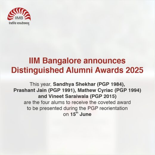 IIM Bangalore Celebrates Four Visionary Alumni with 2025 Distinguished Alumni Awards The Indian Institute of Management Bangalore (IIMB) is proud to announce the recipients of its prestigious Distinguished Alumni Awards (DAA) for 2025. This year, the Institute recognizes four exceptional alumni who have demonstrated outstanding achievement and excellence across diverse...